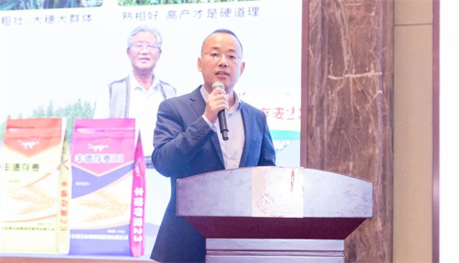 室內會議環節,周口市農業農村局副局長張瑞對參加會議的各位專家和行業同仁表示熱烈歡迎,向與會代表介紹了周口糧食生產基本情況以及良種推廣應用進展情況。并表示,期望合作雙方以此次大會為契機,進一步構造起激蕩思想、分享智慧、合作共贏的高層次創新平臺,共創小麥育種科技創新與產業化合作發展的美好明天。