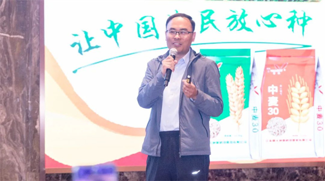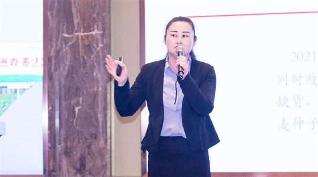 河南明科種業有限公司總經理邱敏女士在大會上對公司發展規劃進行分享匯報;2022年,為深耕河南小麥市場,江蘇明天種業投資,共同成立了河南明科種業有限公司。并獲取優勢品種豐德存麥23、中麥30、揚麥33等。經營上不斷獲取有潛力的強勢品種,開發一批、成熟一批,儲備一批、穩步強勁發展;以現有優良品種為抓手,依托江蘇明天種業健全的小麥產業體系,力爭在小麥主產區發展成為集研發、生產、加工、營銷、技術服務于一體的、產業鏈完善、多作物種子經營的大型種業公司。