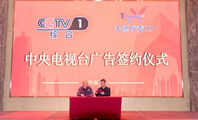 豐德存麥23由江蘇明天種業營銷總監劉強先生與央視業務代表王國強先生進行現場簽約