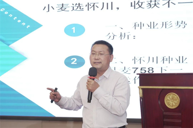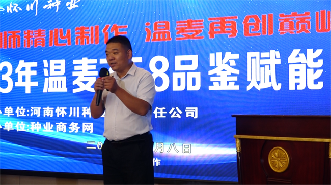 懷川種業副總經理梁衛紅在致辭中介紹,公司歷經二十多年發展,已成為集小麥、玉米兩大糧食作物為主的科研育種、生產繁育、加工銷售、技術服務為一體的育繁推服科技型種業企業。在海南、甘肅、焦作建有650余畝育種中心,種業企業的發展,必須以創新為驅動,雄厚的科研實力,為懷川種業健康、快速發展插上騰飛的翅膀。他表示,懷川種業將以“品種精品、種子精品、質量精品”為動力,保質保量為客戶提供優質服務。相信,與各位合作伙伴精誠合作,攜手共贏,搶抓種業振興機遇,共創種業新輝煌!
