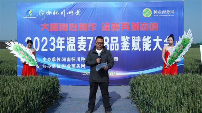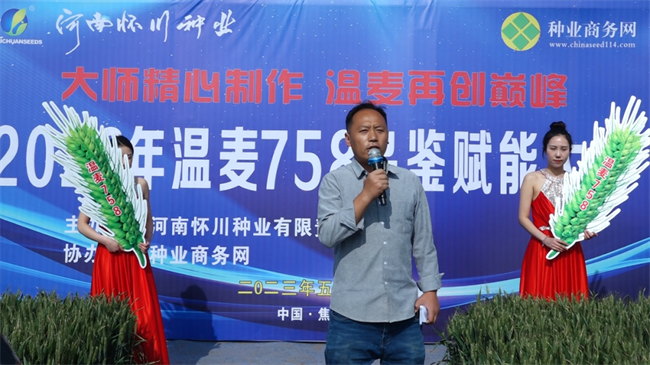 5月8日,河南懷川種業責任有限公司(以下簡稱懷川種業)小麥品種展示田彩旗飄揚,以“2023年溫麥758品鑒賦能大會”為主題的小麥新品種觀摩研討會拉開了帷幕。來自全國近300多名經銷商、零售商、種糧大戶、農戶代表參加觀摩研討會。通過直觀、深入了解公司的小麥新品種和后續新品系,心中更有底氣。為農民增產增收,農業增效,合作伙伴積累更多財富,凝心聚力,共商小麥種業發展大計。會議由懷川種業銷售經理王鵬飛主持!