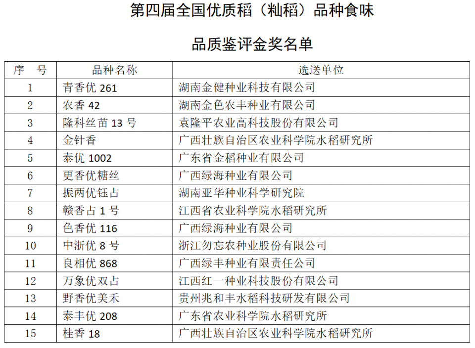 ——廣西5個水稻品種獲第四屆全國優質稻(秈稻)品種食味品質鑒評金獎