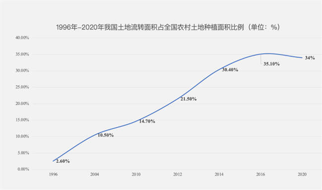 從流(liu)(liu)轉(zhuan)耕(geng)地面積(ji)占家庭承包經營耕(geng)地面積(ji)比(bi)來看(kan),中國(guo)農地流(liu)(liu)轉(zhuan)市(shi)場發(fa)(fa)展(zhan)迅速。1996年(nian)(nian),全國(guo)有(you)2.6%的(de)耕(geng)地發(fa)(fa)生流(liu)(liu)轉(zhuan),到(dao)2004年(nian)(nian),流(liu)(liu)轉(zhuan)比(bi)例快(kuai)速增加(jia)(jia)到(dao)10.5%,然后(hou)(hou)繼續(xu)增加(jia)(jia)到(dao)2010年(nian)(nian)的(de)14.7%。此后(hou)(hou),流(liu)(liu)轉(zhuan)市(shi)場發(fa)(fa)展(zhan)速度不斷加(jia)(jia)快(kuai)。2014年(nian)(nian)流(liu)(liu)轉(zhuan)比(bi)例增加(jia)(jia)到(dao)30.4%,是(shi)2010年(nian)(nian)的(de)兩倍,其間年(nian)(nian)均(jun)流(liu)(liu)轉(zhuan)比(bi)例增速達到(dao)14.4%。2015年(nian)(nian)后(hou)(hou),增速開始變緩(huan),到(dao)2016年(nian)(nian)年(nian)(nian)底,發(fa)(fa)生流(liu)(liu)轉(zhuan)耕(geng)地面積(ji)占比(bi)為35.0%,意味著全國(guo)超過1/3的(de)耕(geng)地發(fa)(fa)生了流(liu)(liu)轉(zhuan)。