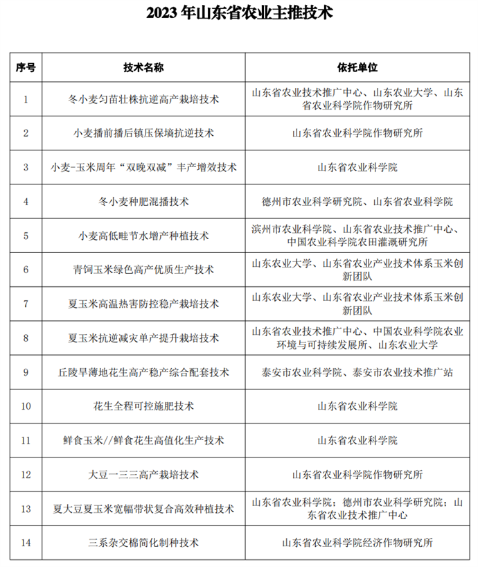 山東推介公布糧油作物主推品種和農業主推技術