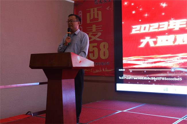 敦玉種業副總經理--艾戰華就天麥178和西麥158下步推廣規劃做了詳細解讀,分享了2023年度營銷政策及各項助商、助民政策支持。