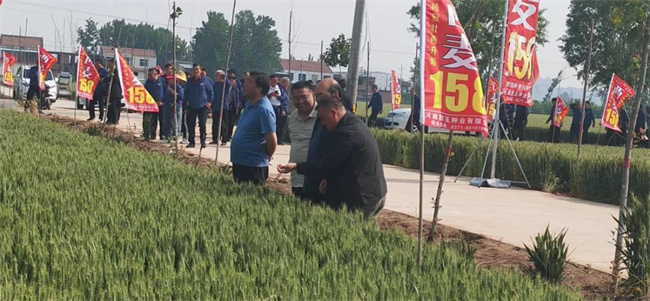 敦玉種業技術人員在田間就天麥178的特征特性、栽培技術要點等進行了分享交流,與會經銷商代表分享了天麥178在各縣市、各省份的優異表現,特別是天麥178在大災之年,對抗凍性、抗倒春寒能力表現凸顯;對白粉病、葉繡、條繡、莖基腐病的抗病性更是優秀,田間無白穗、無死穗,矮稈、大穗,碼密、排列緊,成穗多、群體大,高產潛力大,現場專家、經銷商理論測產1000畝連片種植預估平均畝產量達1800斤以上。