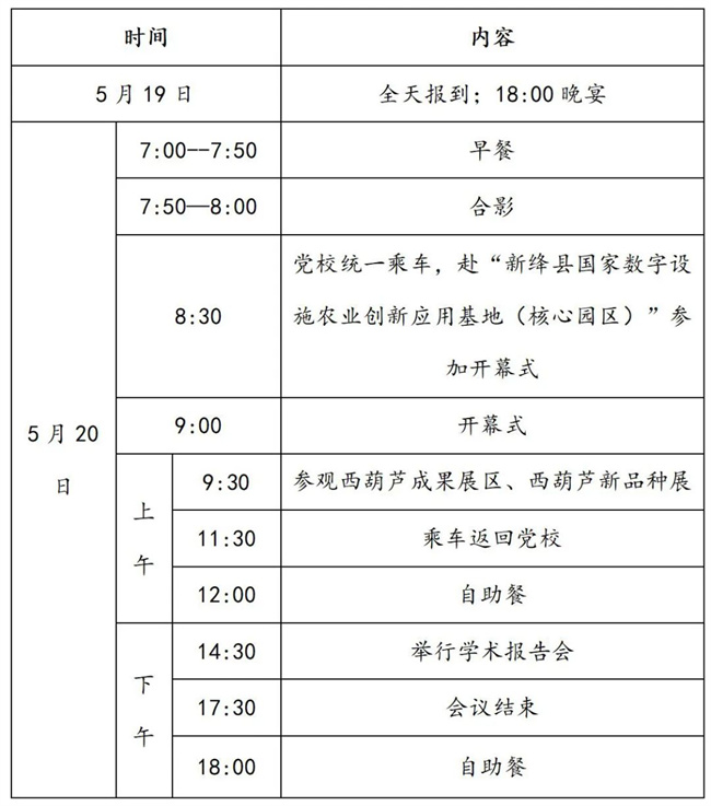 5月20日上午舉行大會開幕式、合作簽約、西葫蘆新品種觀摩;下午舉行學術研討會。