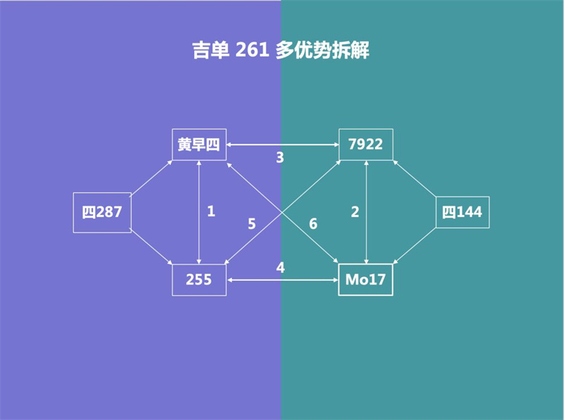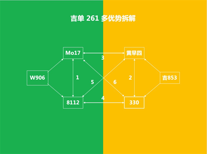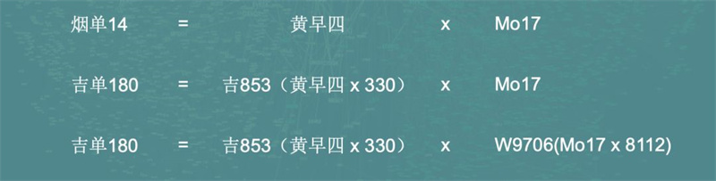 如(ru)最(zui)原(yuan)始的(de)組合煙單14 = 黃(huang)早(zao)四(si) ×Mo17,后來利用(yong)了330 與(yu)黃(huang)早(zao)四(si)改(gai)良選育出(chu)吉853,重新組合為(wei)吉單180= Mo17 × 吉853,再(zai)后來利用(yong)Mo17 ×8112 選育出(chu)W9706,然后再(zai)與(yu)吉853 組合成吉單261。同樣在煙單14= 黃(huang)早(zao)四(si) ×Mo17模式中,只有(you)一種(zhong)(zhong)優(you)(you)(you)(you)勢(shi)(shi),就(jiu)(jiu)是黃(huang)早(zao)四(si)與(yu)MO17 的(de)雜交(jiao)優(you)(you)(you)(you)勢(shi)(shi),在吉單180 = Mo17 × 吉853,可(ke)(ke)以分解出(chu)二個優(you)(you)(you)(you)勢(shi)(shi),那就(jiu)(jiu)是Mo17 與(yu)黃(huang)早(zao)四(si)優(you)(you)(you)(you)勢(shi)(shi)及(ji)Mo17 與(yu)330 的(de)二種(zhong)(zhong)優(you)(you)(you)(you)勢(shi)(shi)(吉853 = 黃(huang)早(zao)四(si) ×330),如(ru)此(ci)可(ke)(ke)以在很(hen)多品種(zhong)(zhong)中找到(dao)三種(zhong)(zhong)優(you)(you)(you)(you)勢(shi)(shi)、四(si)種(zhong)(zhong)優(you)(you)(you)(you)勢(shi)(shi)、五(wu)種(zhong)(zhong)優(you)(you)(you)(you)勢(shi)(shi)、六種(zhong)(zhong)優(you)(you)(you)(you)勢(shi)(shi),六種(zhong)(zhong)優(you)(you)(you)(you)勢(shi)(shi)就(jiu)(jiu)是最(zui)高境界,就(jiu)(jiu)是說構(gou)成所有(you)的(de)材料(liao)(liao)之間(jian)都(dou)有(you)優(you)(you)(you)(you)勢(shi)(shi),如(ru)構(gou)母本(ben)的(de)二個材料(liao)(liao)之間(jian)有(you)強優(you)(you)(you)(you)勢(shi)(shi),構(gou)成父本(ben)的(de)二個材料(liao)(liao)之間(jian)有(you)強優(you)(you)(you)(you)勢(shi)(shi),并(bing)且構(gou)成母本(ben)的(de)二個材料(liao)(liao)分別(bie)與(yu)父本(ben)的(de)二個材料(liao)(liao)之間(jian)仍有(you)優(you)(you)(you)(you)勢(shi)(shi)。