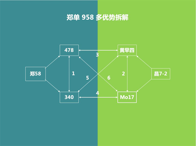 鄭單 958 就(jiu)基本(ben)上符合這個(ge)模式,如果鄭58 是(shi)由478 與(yu)(yu)340 而(er)來,昌(chang)7 是(shi)由黃(huang)(huang)早四(si)(si)與(yu)(yu)M017 而(er)來,那(nei)么首先在群(qun)內都(dou)有優(you)勢(shi)(shi)(shi)(shi),就(jiu)是(shi)二個(ge)優(you)勢(shi)(shi)(shi)(shi)了,478 與(yu)(yu)黃(huang)(huang)早四(si)(si)有優(you)勢(shi)(shi)(shi)(shi)是(shi)第三個(ge)優(you)勢(shi)(shi)(shi)(shi),478 與(yu)(yu)M017 是(shi)瑞德與(yu)(yu)蘭卡,也(ye)不(bu)會差到哪里(li)去,應當優(you)勢(shi)(shi)(shi)(shi)較強(qiang),是(shi)第四(si)(si)個(ge)優(you)勢(shi)(shi)(shi)(shi),同理340 與(yu)(yu)黃(huang)(huang)早四(si)(si)優(you)勢(shi)(shi)(shi)(shi)不(bu)強(qiang),也(ye)算可以(yi),340與(yu)(yu)M017的優(you)勢(shi)(shi)(shi)(shi)就(jiu)很強(qiang)應當是(shi)第五優(you)勢(shi)(shi)(shi)(shi),所(suo)以(yi)這是(shi)個(ge)十(shi)分精典的組合,極(ji)其(qi)完美(mei)。