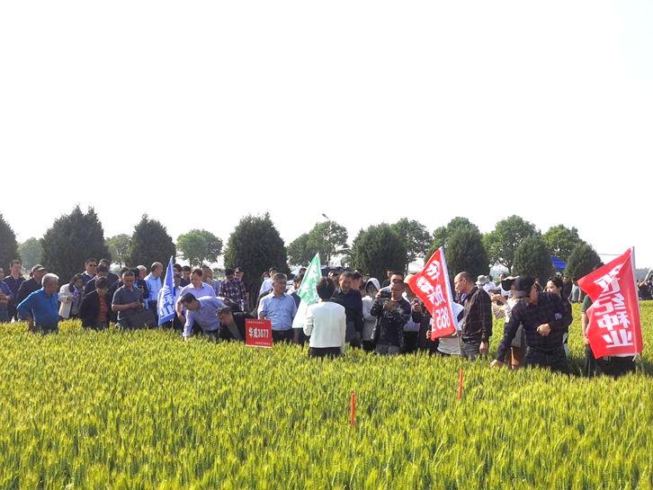 與會代表實地觀摩了位于宿州市農業科學院的安徽省小麥新品種展示示范91個品種。展示現場彩旗招展,麥浪滾滾,一派豐收景象。宿州市農科院張玉坤所長介紹今年小麥新品種展示田間表現情況,華成種業、新世紀種業等公司負責人分別介紹了華成3077、華成5155、新世紀878、徽研66等小麥品種田間表現情況。總體來看,參展品種長勢良好,豐收在望,品種優良性狀得到了充分展現。