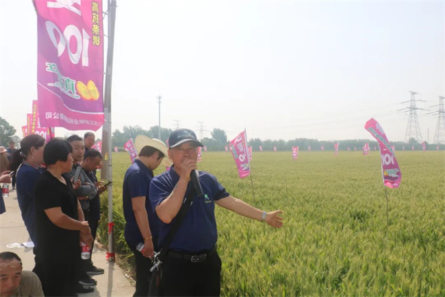 江蘇三好種業河南大區經理劉文濤介紹,徐麥100亮點多,綜合性狀優勢明顯。田間長相好、觀摩看相好,經營賣相好,加工品相好,相信能為更多合作伙伴帶來巨大財富。并對徐麥100品種特征特性做詳細介紹。