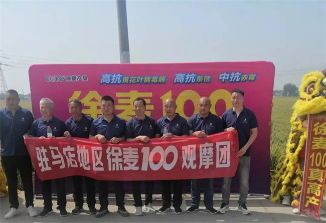 經銷商代表交流發言中均表示:通過田間觀摩和相鄰地塊別的品種對比,徐麥100綜合性狀優勢十分明顯。特別是近幾年黃淮麥區氣候復雜多變,災害性天氣頻發,2022年底低溫干旱,4月份的桃花雪,從田間長勢來看,徐麥100不受任何影響。目前,市場特別關注小麥的抗凍抗寒性,抗病性和抗倒性三大難題,追求穩產,不再把高產作為選擇品種的首要目標。徐麥100,中抗赤霉病,高抗黃花葉病(周口、駐馬店高發區),莖稈粗壯韌性好,高抗倒;群體大,穗子多,產量不會低。徐麥100剛好解決了目前市場認可的抗凍性好、抗病性好、抗倒性好的“三好”品種。此次觀摩會的探討和交流,充分了解徐麥100市場競爭優勢,非常有信心與三好種業合作,大力推廣,共同發展!
