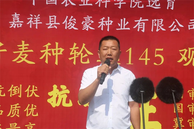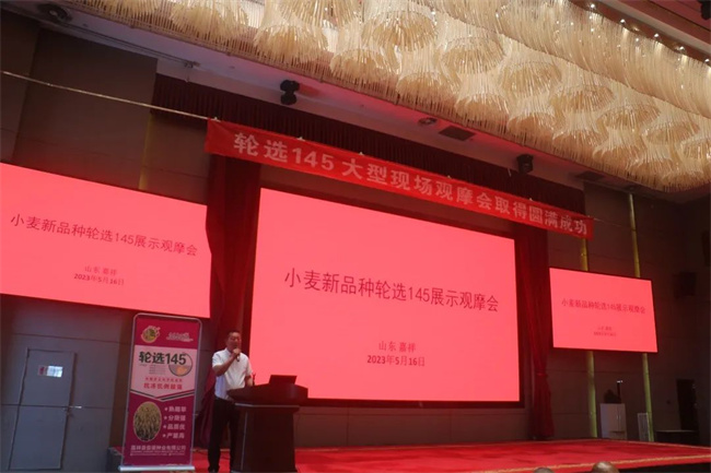 5月16日,嘉祥縣俊豪種業有限公司(以下文中簡稱“俊豪種業”)雙國審、雙省審小麥新品種輪選145品鑒論壇在嘉祥銀座佳悅酒店隆重舉行。來自全國經銷商代表、種植大戶近千人參加本次會議。會議旨在鑒品種,把方向,共商共議促進輪選145推廣應用,凝心聚力謀未來。會議由俊豪種業副總經理蘇建平主持!