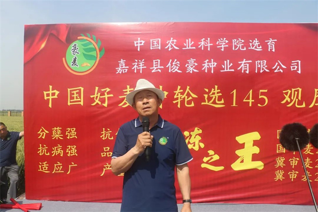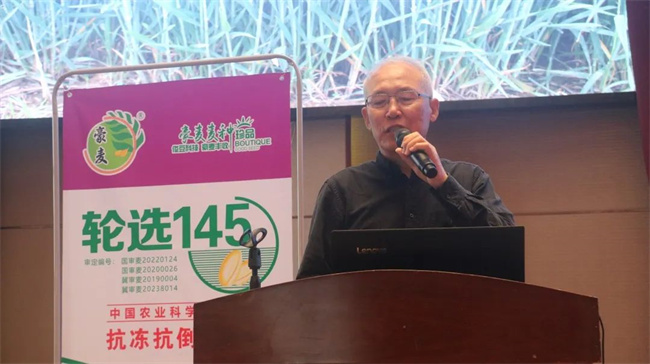 中國農科院作物科學研究所周洋研究員對輪選145特征特性做詳細講解。據介紹,輪選145品種來源:濟麥22/169-5Z,母本濟麥22,產量高,品質優,適應性廣;父本169-5Z,矮稈,稈硬,抗倒能力強。輪選145遺傳了雙親優質、抗病、抗倒強等特質,并實現雙親性狀互補,主要綜合性狀均超雙親,綜合抗病性好,抗逆性強;