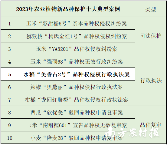 日前,農業農村部發布2023年農業植物新品種保護十大典型案例。水稻“美香占2號”品種權侵權行政執法案入選,是關于品種權侵權行為與其他種子違法(fa)行為競(jing)合而實施高額行政處罰的典型案例(li)。