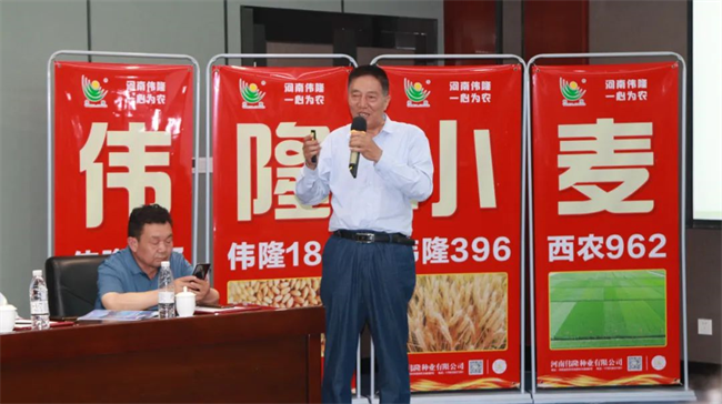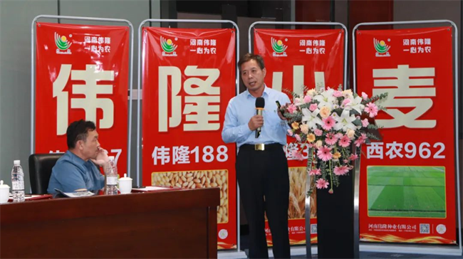 陜西楊凌偉隆農業科技有限公司總經理徐永林在致辭中介紹,為加快小麥新品種推廣應用,擴大“偉隆”系列小麥品種在黃淮海麥區的影響力,促進農業增效,農民增收,保障國家糧食安全,特成立由陜西楊凌偉隆農業科技有限公司控股的河南偉隆種業有限公司。