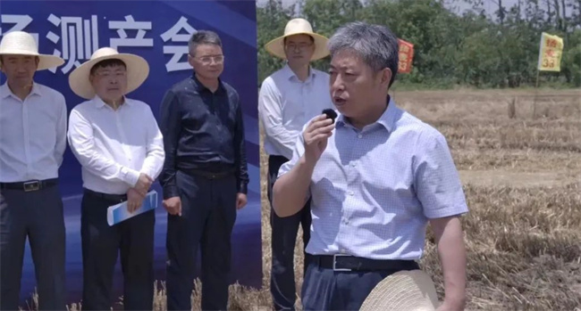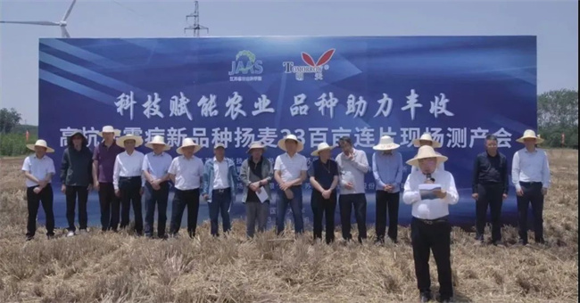 本次小(xiao)(xiao)麥(mai)(mai)測(ce)產(chan)(chan)與以往僅(jin)選(xuan)擇幾畝地測(ce)產(chan)(chan)有(you)所不同,實測(ce)驗(yan)收面積超(chao)過了一(yi)百畝,屬全(quan)國罕見。江蘇(su)明天種(zhong)業(ye)科技股份有(you)限公(gong)司(si)總經理嚴(yan)輝民(min)在致辭中表示,揚(yang)(yang)麥(mai)(mai)33兩(liang)年來的(de)(de)推(tui)廣(guang)(guang)應用,各地表現均不負眾望,令人驚喜(xi),獲得了種(zhong)植戶、經銷商(shang)、各級(ji)農(nong)業(ye)推(tui)廣(guang)(guang)部門的(de)(de)一(yi)致好評,并于2022年作為唯一(yi)小(xiao)(xiao)麥(mai)(mai)品(pin)種(zhong)成(cheng)功進入(ru)全(quan)國13項重大(da)新產(chan)(chan)品(pin)行(xing)列,成(cheng)為全(quan)國小(xiao)(xiao)麥(mai)(mai)主推(tui)品(pin)種(zhong)之(zhi)一(yi)。為了加速揚(yang)(yang)麥(mai)(mai)33重大(da)科研成(cheng)果的(de)(de)快速轉化和(he)(he)推(tui)廣(guang)(guang),為廣(guang)(guang)大(da)種(zhong)植大(da)戶選(xuan)定好品(pin)種(zhong)提供依據(ju),充分(fen)挖掘和(he)(he)發(fa)揮揚(yang)(yang)麥(mai)(mai)33抗赤霉病(bing)和(he)(he)高產(chan)(chan)協(xie)同優勢,大(da)膽創新,挑(tiao)戰(zhan)自(zi)我(wo),首創小(xiao)(xiao)麥(mai)(mai)百畝連片現場測(ce)產(chan)(chan)的(de)(de)形(xing)式(shi),來進一(yi)步驗(yan)證揚(yang)(yang)麥(mai)(mai)33大(da)面積種(zhong)植的(de)(de)實地表現和(he)(he)產(chan)(chan)量潛力。公(gong)司(si)將以此次活(huo)動為契機(ji),充分(fen)發(fa)揮揚(yang)(yang)麥(mai)(mai)33的(de)(de)標桿和(he)(he)典(dian)范力量,讓揚(yang)(yang)麥(mai)(mai)33為糧食安全(quan)、農(nong)業(ye)增效和(he)(he)種(zhong)業(ye)振(zhen)興做(zuo)出應有(you)的(de)(de)貢(gong)獻!