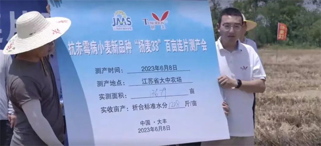 經(jing)過(guo)(guo)緊(jin)張有序的(de)收割、丈量(liang)、稱(cheng)重、測(ce)水分(fen)等工(gong)作,折合標準(zhun)水分(fen)并(bing)扣(kou)除雜(za)質后,最終公布“現(xian)場連片收獲的(de)136.79畝揚(yang)麥(mai)33平均畝產(chan)604公斤(jin)”,結果顯示其“高產(chan)”得到(dao)實地(di)驗證(zheng)。農(nong)業農(nong)村部小(xiao)麥(mai)專家指導(dao)組組長(chang)、揚(yang)州大學郭文善教授說:“揚(yang)麥(mai)33是一個抗病性(xing)(xing)強(qiang)、綜合性(xing)(xing)狀優良、產(chan)量(liang)潛(qian)力(li)(li)比較高的(de)品種,這樣通過(guo)(guo)高的(de)播種質量(liang)、合理的(de)施肥、主動的(de)抗逆(ni),最后把它(ta)的(de)高產(chan)潛(qian)力(li)(li)發揮(hui)出來(lai),取得了比較理想的(de)產(chan)量(liang)記錄(lu)。”