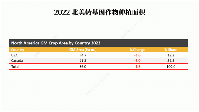 在區(qu)(qu)域層面(mian)(mian)(mian)上(shang),北美地(di)(di)區(qu)(qu)在中(zhong)南美洲之(zhi)后(hou)是第二(er)大(da)(da)轉基因(yin)種(zhong)(zhong)植(zhi)面(mian)(mian)(mian)積,2022年種(zhong)(zhong)植(zhi)面(mian)(mian)(mian)積總計8600萬公頃(qing),比2021年下降(jiang)了1.3%。在2019年之(zhi)前(qian),北美地(di)(di)區(qu)(qu)是轉基因(yin)種(zhong)(zhong)植(zhi)面(mian)(mian)(mian)積最(zui)大(da)(da)的地(di)(di)區(qu)(qu),然而(er),美國和加(jia)(jia)拿(na)大(da)(da)在2019年受到嚴重(zhong)天氣影響,導(dao)致種(zhong)(zhong)植(zhi)面(mian)(mian)(mian)積下降(jiang),而(er)巴西不斷(duan)增加(jia)(jia)種(zhong)(zhong)植(zhi)面(mian)(mian)(mian)積,使得(de)北美失去了領先(xian)地(di)(di)位。美國是北美地(di)(di)區(qu)(qu)最(zui)大(da)(da)的轉基因(yin)種(zhong)(zhong)植(zhi)面(mian)(mian)(mian)積,其種(zhong)(zhong)植(zhi)面(mian)(mian)(mian)積是加(jia)(jia)拿(na)大(da)(da)的6.6倍。在北美地(di)(di)區(qu)(qu),玉米是最(zui)重(zhong)要(yao)的轉基因(yin)作物(wu),美國通常(chang)是世界上(shang)出口(kou)收(shou)獲玉米最(zui)多的國家。