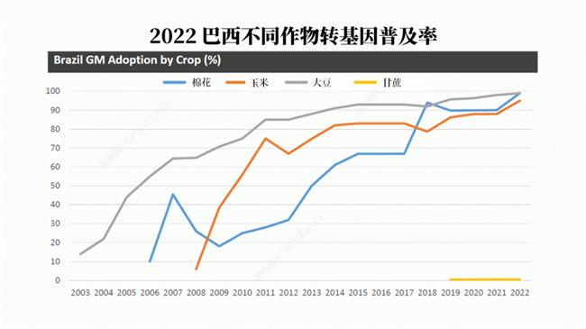 在區(qu)域(yu)層面上,中南(nan)美(mei)洲(zhou)在2022年(nian)(nian)(2021/22農業(ye)年(nian)(nian)度(du))擁(yong)有最大(da)的(de)轉(zhuan)基(ji)因(yin)(yin)種(zhong)(zhong)植(zhi)(zhi)(zhi)面積(ji)(ji),達到9330萬公頃。種(zhong)(zhong)植(zhi)(zhi)(zhi)面積(ji)(ji)比去年(nian)(nian)增加了7.4%,其(qi)中巴(ba)西(xi)(xi)的(de)種(zhong)(zhong)植(zhi)(zhi)(zhi)面積(ji)(ji)大(da)幅增加。中南(nan)美(mei)洲(zhou)在2019年(nian)(nian)超過北美(mei)地區(qu)成為最大(da)的(de)轉(zhuan)基(ji)因(yin)(yin)作物種(zhong)(zhong)植(zhi)(zhi)(zhi)區(qu),部分原因(yin)(yin)是(shi)(shi)巴(ba)西(xi)(xi)轉(zhuan)基(ji)因(yin)(yin)作物種(zhong)(zhong)植(zhi)(zhi)(zhi)面積(ji)(ji)的(de)擴大(da)。巴(ba)西(xi)(xi)迅速擴大(da)了其(qi)轉(zhuan)基(ji)因(yin)(yin)作物種(zhong)(zhong)植(zhi)(zhi)(zhi)面積(ji)(ji),現在幾乎占(zhan)據了該地區(qu)轉(zhuan)基(ji)因(yin)(yin)種(zhong)(zhong)植(zhi)(zhi)(zhi)面積(ji)(ji)的(de)68%。在巴(ba)西(xi)(xi)之后,阿根廷是(shi)(shi)該地區(qu)的(de)下一個主要國(guo)家,占(zhan)該地區(qu)轉(zhuan)基(ji)因(yin)(yin)種(zhong)(zhong)植(zhi)(zhi)(zhi)面積(ji)(ji)的(de)25.2%。在巴(ba)西(xi)(xi)和阿根廷之后,其(qi)余(yu)國(guo)家的(de)轉(zhuan)基(ji)因(yin)(yin)種(zhong)(zhong)植(zhi)(zhi)(zhi)面積(ji)(ji)迅速下降,排名第三(san)的(de)巴(ba)拉圭僅占(zhan)該地區(qu)轉(zhuan)基(ji)因(yin)(yin)種(zhong)(zhong)植(zhi)(zhi)(zhi)面積(ji)(ji)的(de)4.0%。在中南(nan)美(mei)洲(zhou),大(da)豆是(shi)(shi)主導作物,占(zhan)該地區(qu)轉(zhuan)基(ji)因(yin)(yin)種(zhong)(zhong)植(zhi)(zhi)(zhi)面積(ji)(ji)的(de)67.2%。