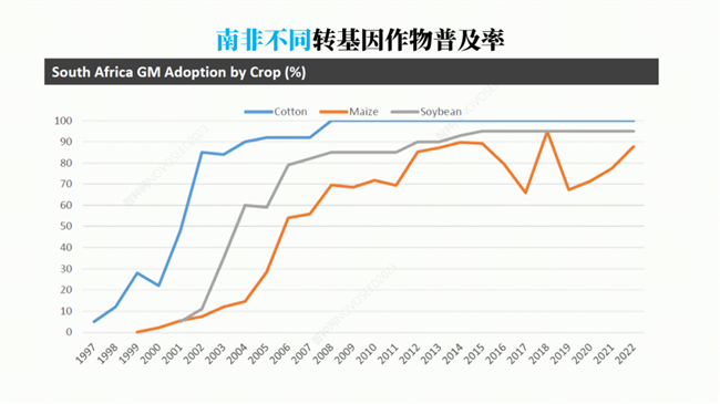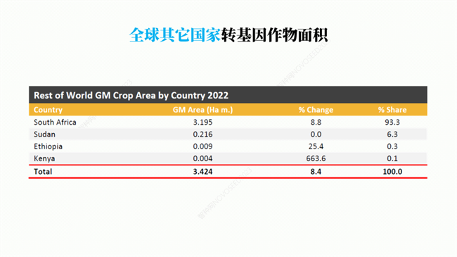 2022年(nian),其(qi)余地(di)(di)區(qu)種(zhong)植了(le)340萬公頃的(de)(de)(de)轉(zhuan)(zhuan)(zhuan)基(ji)(ji)因作(zuo)物,比前一年(nian)增長(chang)了(le)8.4%。南非(fei)是該(gai)地(di)(di)區(qu)轉(zhuan)(zhuan)(zhuan)基(ji)(ji)因種(zhong)植的(de)(de)(de)主要驅動力(li),占該(gai)地(di)(di)區(qu)轉(zhuan)(zhuan)(zhuan)基(ji)(ji)因種(zhong)植面積的(de)(de)(de)90%以上。從2008年(nian)到2015年(nian),布基(ji)(ji)納(na)法索種(zhong)植了(le)轉(zhuan)(zhuan)(zhuan)基(ji)(ji)因棉花,但由于(yu)包含轉(zhuan)(zhuan)(zhuan)基(ji)(ji)因特征的(de)(de)(de)品種(zhong)產量不足,種(zhong)植活動已經(jing)結束(shu)。自2012年(nian)以來,該(gai)地(di)(di)區(qu)的(de)(de)(de)其(qi)他國家已經(jing)開始種(zhong)植轉(zhuan)(zhuan)(zhuan)基(ji)(ji)因作(zuo)物,非(fei)洲現在成(cheng)為一個(ge)具有轉(zhuan)(zhuan)(zhuan)基(ji)(ji)因種(zhong)植潛力(li)的(de)(de)(de)地(di)(di)區(qu)。