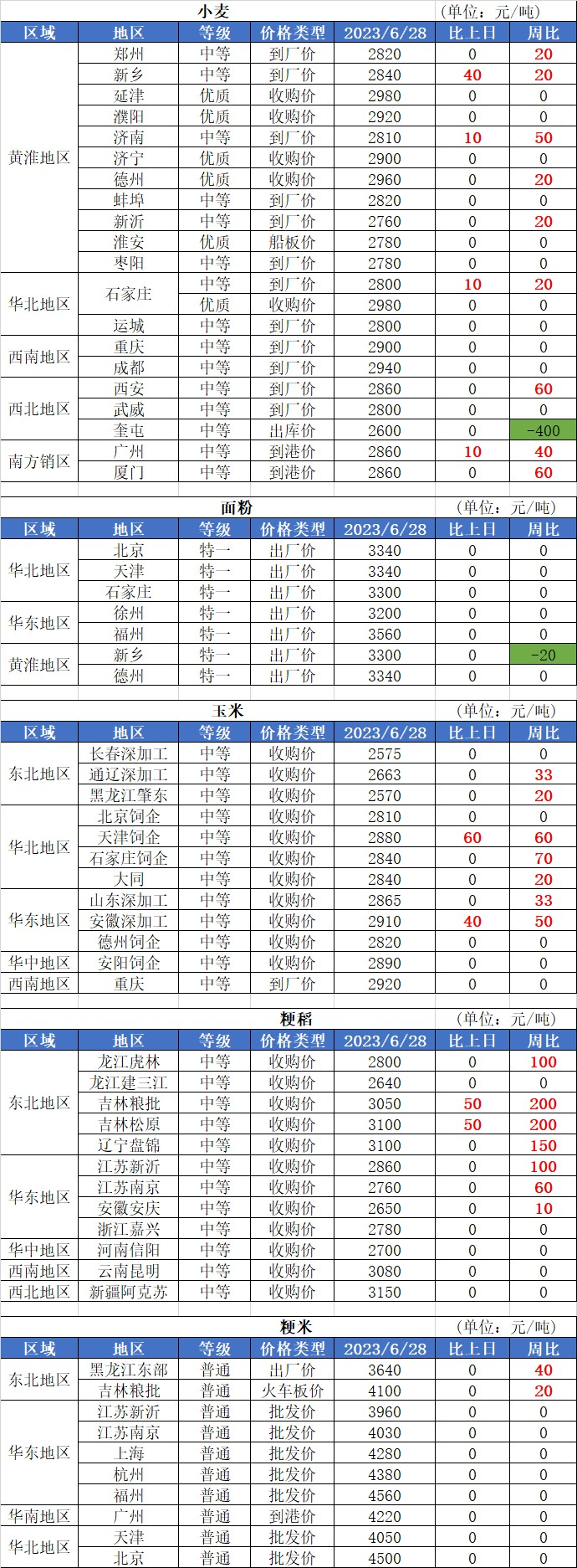 1、6月28日小麥價格局部上漲,漲幅普遍在5厘到1分,目前主產區制粉企業小麥收購價格普遍在1.35-1.47元/斤,收購均價達到1.4元/斤。
