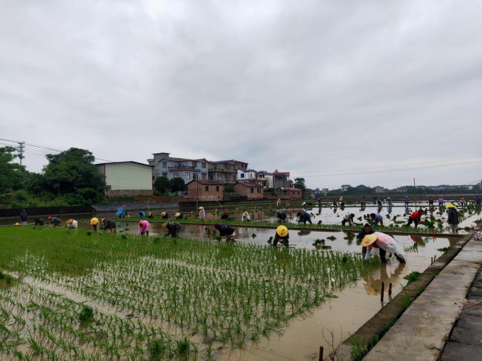 工作人員進行展示示范水稻品種移栽
