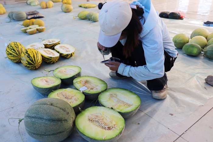 農業農村部組織開展的第三次全國農作物種質資源普查與收集行動正有序推進。國家西瓜甜瓜種質資源中期庫(鄭州)主要負責西瓜甜瓜資源的編目入庫工作。今年,該庫在位于新疆的哈密國家農業科技園區的試驗地開展普查資源的繁殖更新與數據采集工作,種植來自全國31個省(區、市)匯交的西瓜甜瓜1200余份,其中,甜瓜950份,西瓜320份。 目前,中期庫已完成西瓜甜瓜資源田間數據調查、性狀核對工作,正在進行果實采收及標準化數據采集,為下一步順利完成種質資源編目入庫做準備。