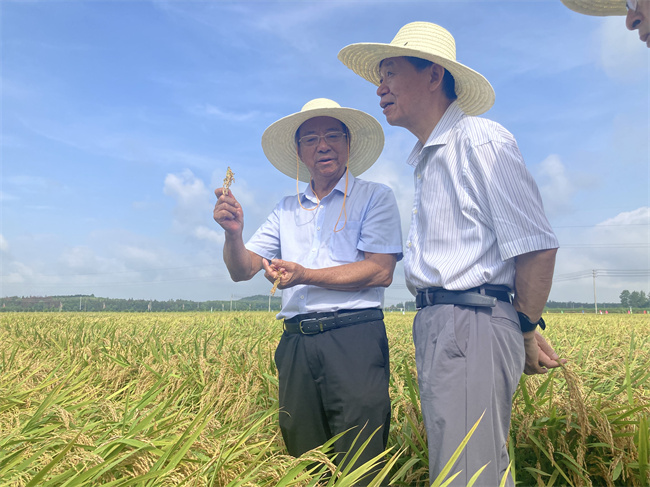 謝華安院士(左)與李家洋院士(右)在試驗田(tian)中