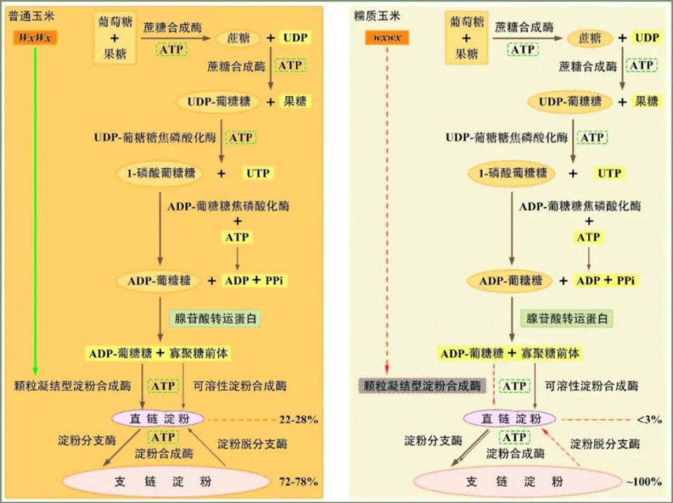 圖 1 糯玉米籽(zi)粒胚乳淀(dian)粉(fen)合(he)成(cheng)的(de)遺傳與(yu)分子調控機制