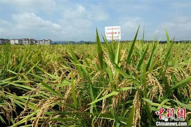 “中科(ke)發早粳1號”等新品系江西(xi)上高千畝(mu)示(shi)范(fan)現場,沉(chen)甸甸的稻穗顯示(shi)豐收(shou)在即。中新社記(ji)者 孫自法 攝