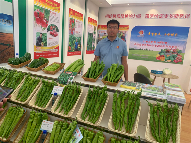 長如臂的辣椒、紅似火的番茄、綠如墨的蔬菜琳瑯滿目。亮晶晶、豫藝巧克力、青春之歌……各種新奇的果蔬名引來大家駐足欣賞。