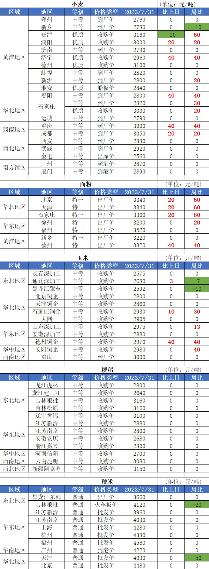 2、7月31日國內玉米價格局部偏強,其中:南北港口、南方銷區、東北地區玉米價格基本穩定;華北地區、山東地區玉米價格基本穩定,局部價格上漲,漲幅10-20元/噸。