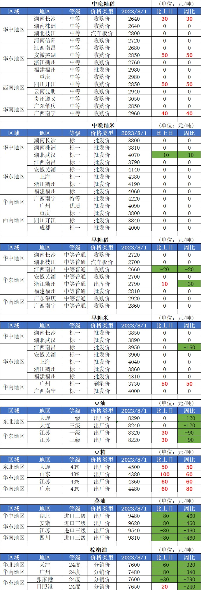 3、8月1日投放政策性稻谷60.16萬噸,實際成交8.7萬噸,成交率14.5%。其中中晚秈稻成交3.1萬噸,均價2531元/噸;粳稻成交5.61萬噸,均價2668元/噸。