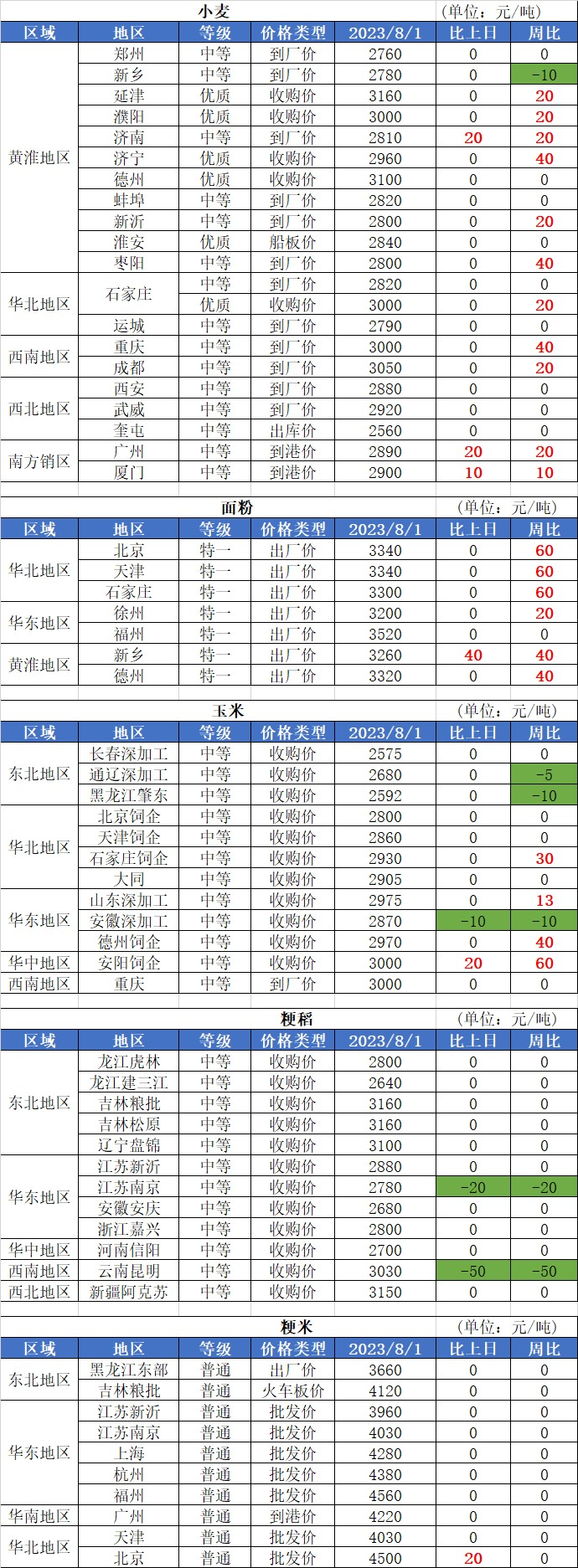 2、8月1日國內玉米價格震蕩下跌,其中:南北港口、華北地區、東北地區玉米價格基本穩定;山東地區、南方銷區玉米價格基本穩定,局部價格上漲,跌幅10-30元/噸。