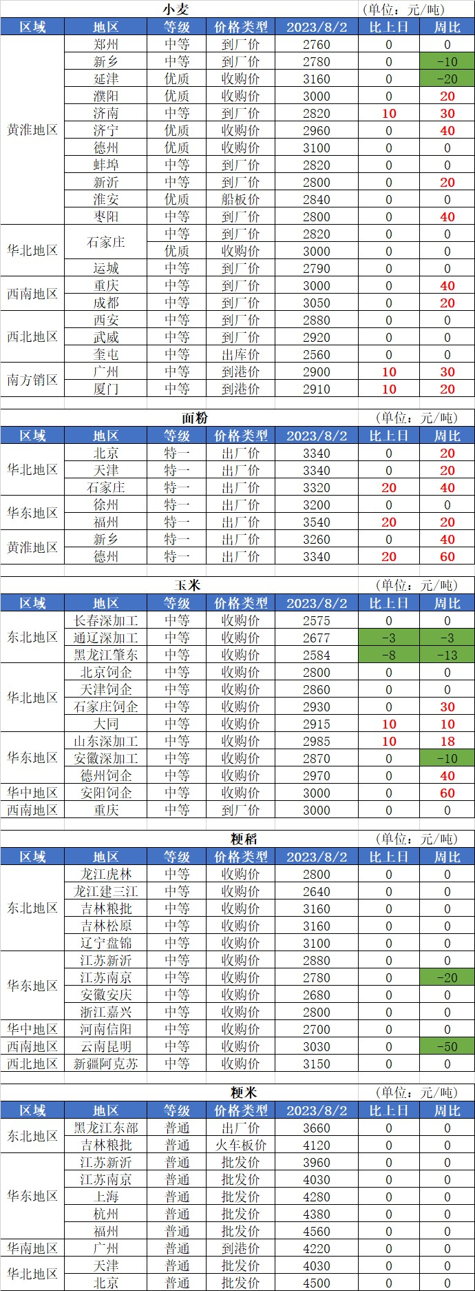 2、8月2日國內玉米價格局部走低,其中:南北港口、華北地區、南方銷區玉米價格基本穩定;山東地區、東北地區玉米價格基本穩定,局部價格下跌,跌幅10-44元/噸。