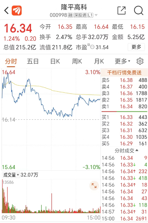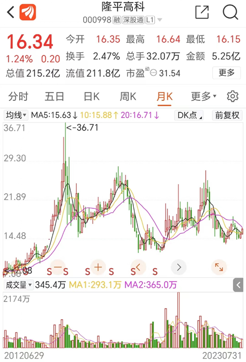 7月31日早盤,隆平高科股價高開1.3%,其后窄幅震蕩,最終以1.24%的漲幅收盤,目前股價為16.34元,市值215億。