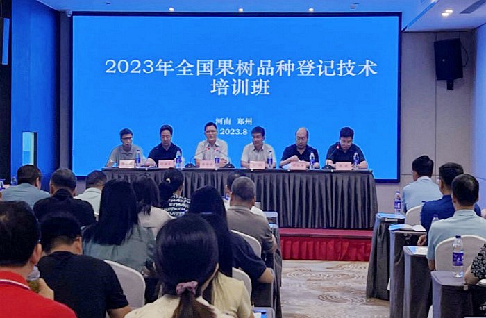 2023年8月1-3日,全國果樹品種登記技術培訓班暨果樹登記優良品種現場觀摩活動在河南鄭州舉辦。培訓班講解品種登記辦法指南修改要點,培訓果樹品種試驗技術,邀請華中農業大學、華南農業大學、寧夏大學、中國農科院鄭州果樹所、廣東省農科院、山東省農科院等科研育種權威專家介紹我國果樹育種創新進展和產業發展現狀,觀摩果樹品種創新成果,規范果樹品種登記入市,加快新品種選育推廣。