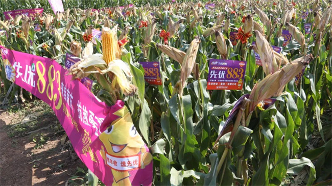 先優883觀摩田內,行行玉米植株清秀、莖稈粗壯、果穗飽滿、粒粒金黃,做好了接受經銷商和種植戶的“檢閱”。驕陽下,觀摩代表在展示區走走停停,細細觀摩,拍照留影、攝制短視頻絡繹不絕。參會代表對先優883大田優秀表現給予充分肯定和高度認可,紛紛表示,通過觀摩,對先優883大田優勢表現有了進一步了解和認識,親眼見證了品種的實力,提升了合作信心。