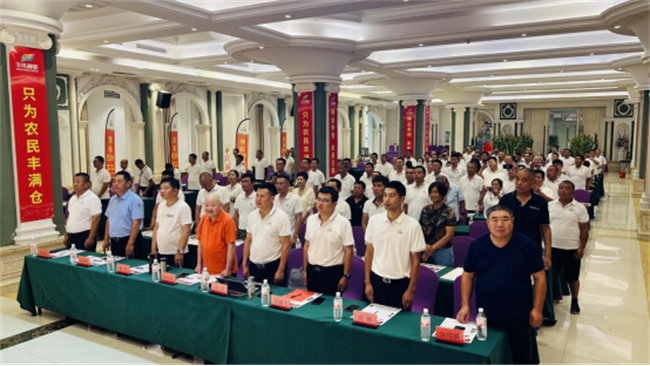 在嘹亮的國歌聲中全體人員肅立,心中充滿對祖國的感恩和自豪,體現了大北農豐偉種業的家國情懷,搶抓國家種業發展大機遇,聚焦種子科技,共創豐功偉業!