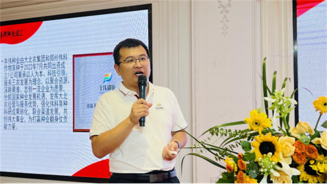 豐偉種業銷售經理席鵬飛老師向大家匯報了《豐偉種業發展歷程》,打贏種業翻身仗,豐功偉業攜手創!2022年7月,大北農集團與偉科育種科企強強聯合,共同成立豐偉種業,打造種業新星。豐偉種業背靠大北農集團和鄭州偉科育種,發揮大北農經營與服務優勢,強化偉科育種科研成果轉化,聯合渠道發展,共創偉大事業。