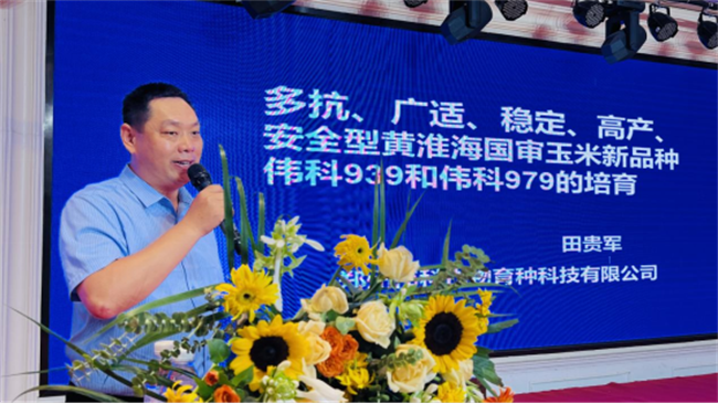 鄭州偉科作物育種首席育種家田貴軍老師從偉科育種一直以來的科研成果,結合黃淮海當前氣候多變,自然災害、病蟲害等方面進行講解,深入的介紹了陳偉程教授第四代白軸大穗型國審玉米新品種--偉科939和紅軸大穗型國審玉米新品種--偉科979;偉科939和偉科979既保留著偉科系列的廣適、穩定、高產、安全、結實性好、大穗、顏值高等精髓,又導入了抗南方銹病、抗莖腐病等優良抗病基因,提高了安全性,加強了抗災害能力,特別是堅桿基因的導入,使其具有很高的抗倒性,后期站桿能力強,適合機械化收獲,這兩個品種是陳偉程老師的最新聚優改良突破性成果。