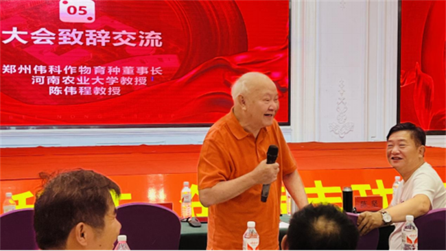 鄭州偉科作物育種董事長、河南農業大學陳偉程教授特意為大會進行致辭交流,陳偉程教授親自講述了偉科939、偉科979品種的特征特性和期望,對豐偉種業的推廣能力充滿信心。陳偉程教授強調:“跟著豐偉走,好品種一直有!跟著豐偉走,好品種一定有!”