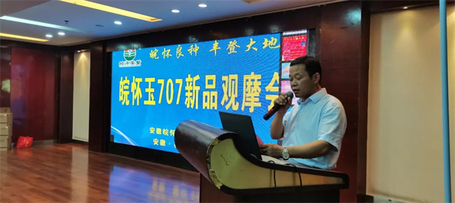 會上,皖懷公司經理魯超回顧了公司發展歷程,他表示,皖懷種業作為一家科技創新型種業企業,一直注重科研投入和加大育種創新能力,公司先后育成具有市場競爭優勢的皖懷玉707和金享玉515玉米新品種,公司市場地位凸顯。據介紹,皖懷玉707:苗期苗壯,株型緊湊,株高適中,穗位較低,基部節間較短,莖稈粗壯,韌性強,根系發達,抓地牢,提高了抗倒能力;花粉量大,花期長,花粉活力強,結實性好;密度彈性大,廣適;抗病性好,抗南方銹病,中抗莖腐病,抗穗腐病;棒大軸細粒深,出籽率高,高產穩產。