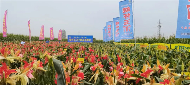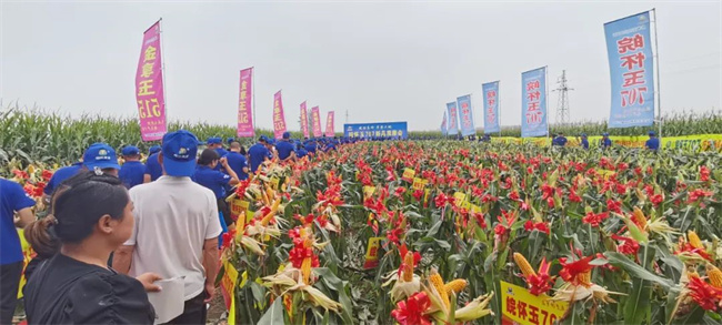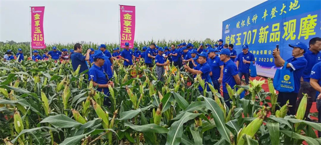 會前,參會代表對皖懷玉707和金享玉515進行大田觀摩。觀摩現場,人頭攢動,察看穗行穗粒,測試抗倒能力,量株高,丈穗位,各顯神通。紛紛表示,品種綜合表現非常好,是適合自己當地種植的中意品種,值得大力推廣,對品種的市場前景很有信心!