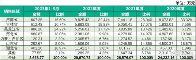 金苑種業銷售區域分布及占比(bi)(單位:萬元);數據來源:金苑種業招股(gu)書