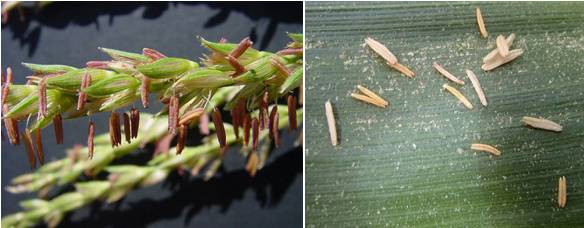 當花粉粒成熟后,花藥逐漸脫水,在每天的響午,隨著溫度的升高和陽光照射,花藥開始大量開裂,花粉散出。花粉粒從散出到失活只有短暫的幾分鐘時間,一個雄穗能持續散粉 5 天,大田從最早開始散粉到完全結束持續兩周。