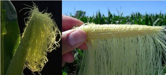 果穗下部先發育出花絲,穗頂部最后出現花絲,同樣,授粉時也是從果穗下部先開始;