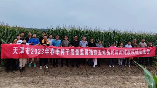 為全面掌握我市種子質量情況,從源頭保障農業生產用種安全,近日,市農業中心植保植檢部(種子技術服務部)組織有關玉米育種栽培專家及各區鑒定代表組成品種純度鑒定組,在天津市薊州區康恩偉泰種子有限公司對2023年春季農作物種子質量監督抽查所扦取的148個玉米種子樣品進行品種純度小區種植鑒定。