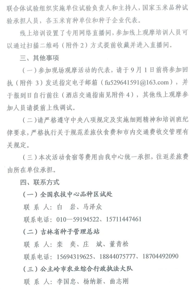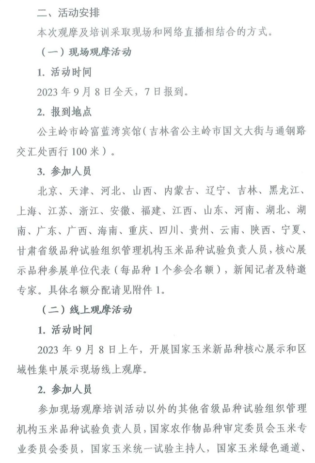 參加現場觀摩培訓活動以外的其他省級品種試驗組織管理機構玉米品種試驗負責人員,國家農作物品種審定委員會玉米專業委員會委員,國家玉米統一試驗主持人,國家玉米綠色通道、聯合體試驗組織實施單位試驗負責人和主持人,國家玉米品種試驗承擔人員,各玉米育種單位和種子企業代表。